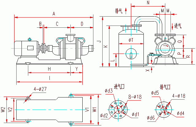 | 代號 | T | V2 | V1 | W1 | W2 | X | Y | d1 | d2 | d3 | d4 | d5 | d6 | 地腳螺栓 | |